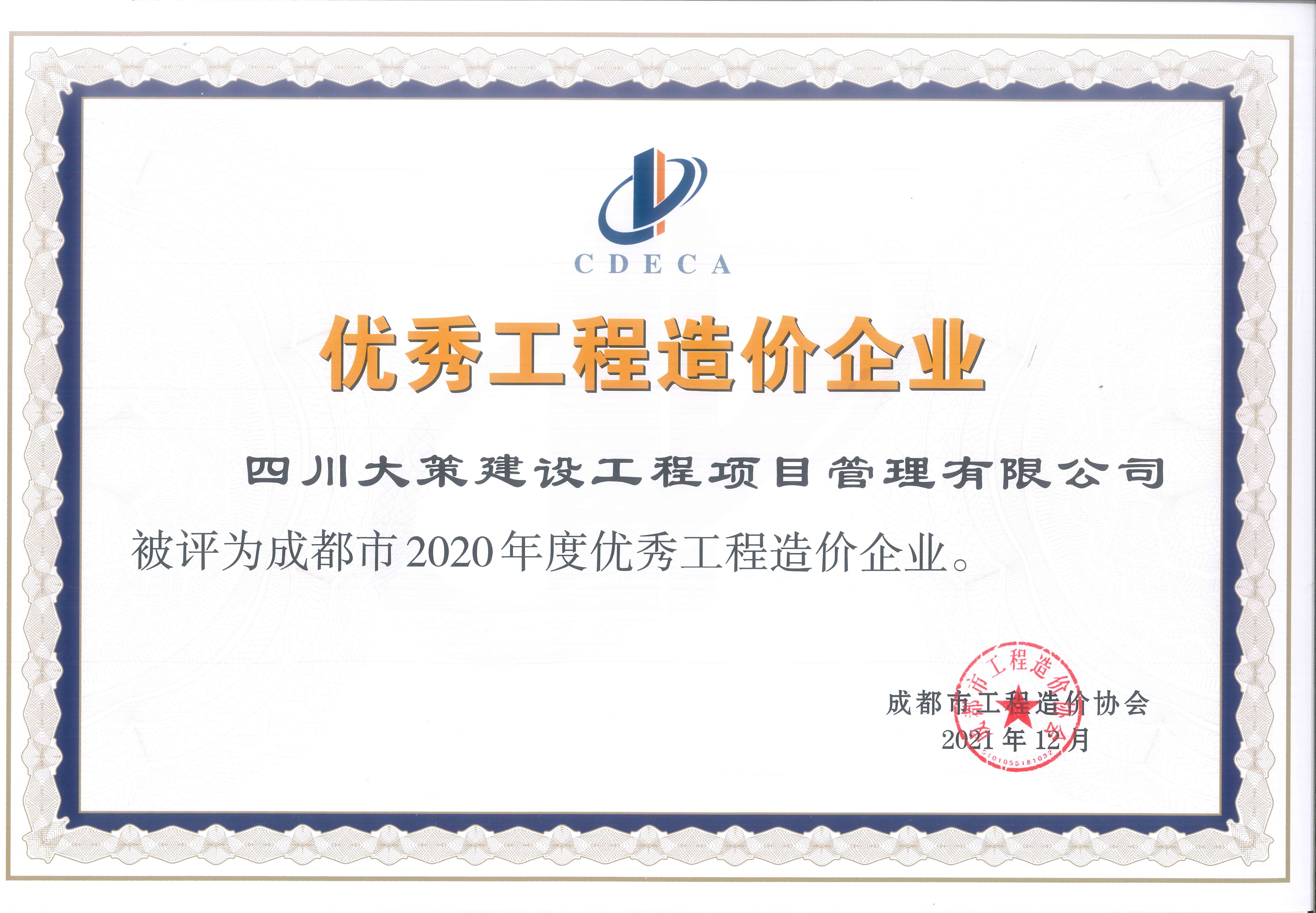 - 2020年度優(yōu)秀工程造價咨詢企業(yè)
